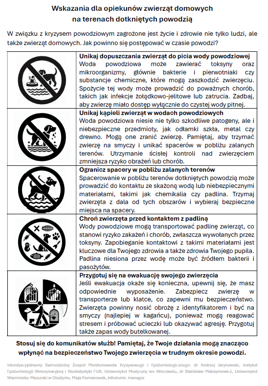 Wskazania dla opiekunów zwierząt domowych na terenach dotkniętych powodzią